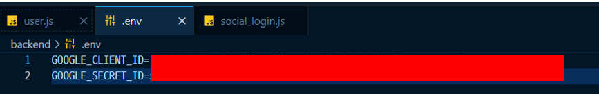 해당 env 파일에 GOOLE_CLIENT_ID와 GOOGLE_SECRET_ID 값들을 넣어준다.
