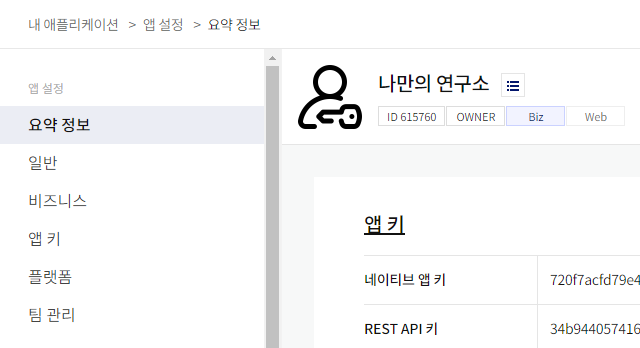 해당 클라이언트ID와 클라이언트 보안 비밀번호중 특히 보안 비밀번호는 유출해서는 안되는값들이다