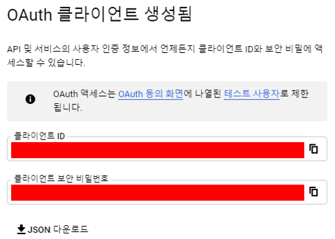 여기까지 진행하면 OAuth 클라이언트 생성이 완료된다.