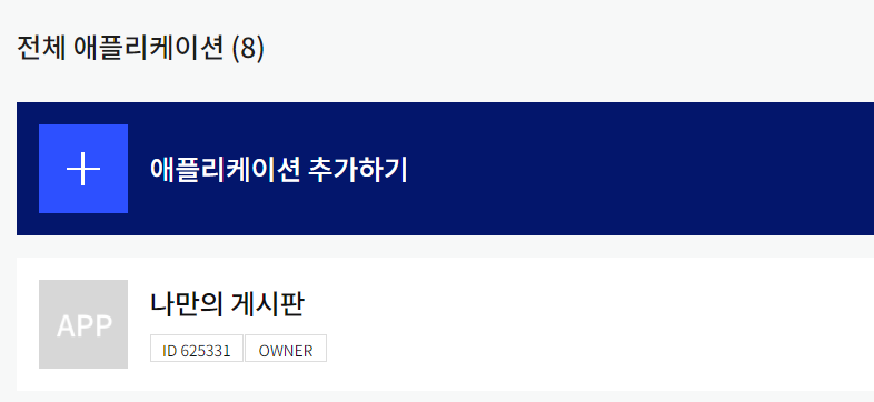 내 애플리케이션 -> 애플리케이션 추가하기로 이동한다.