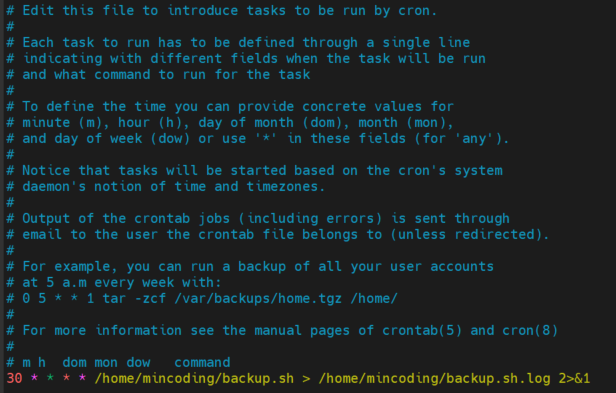 crontab -e 를 실행하여 크론탭에 내용을 작성해준다.