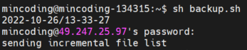 쉘을 실행시켜서 동작시키게 되면 원격 백업의 경우 해당 원격지의 비밀번호를 물어보게 된다.