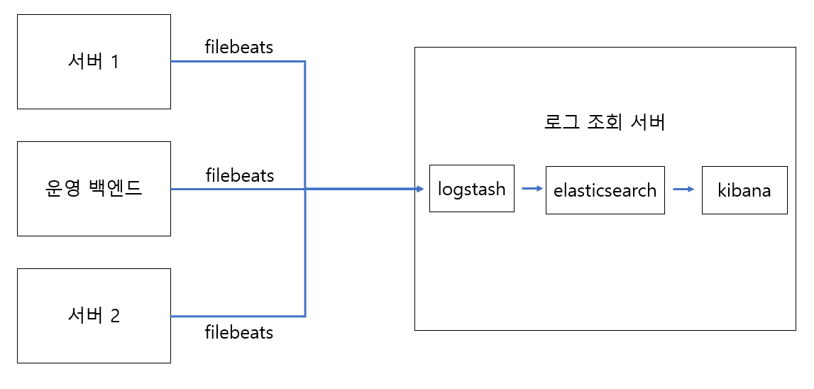 - 수집한 데이터는 로그 조회 서버의 logstash에 전송