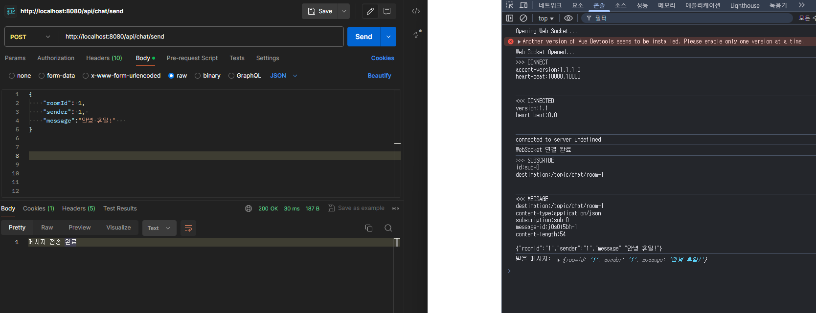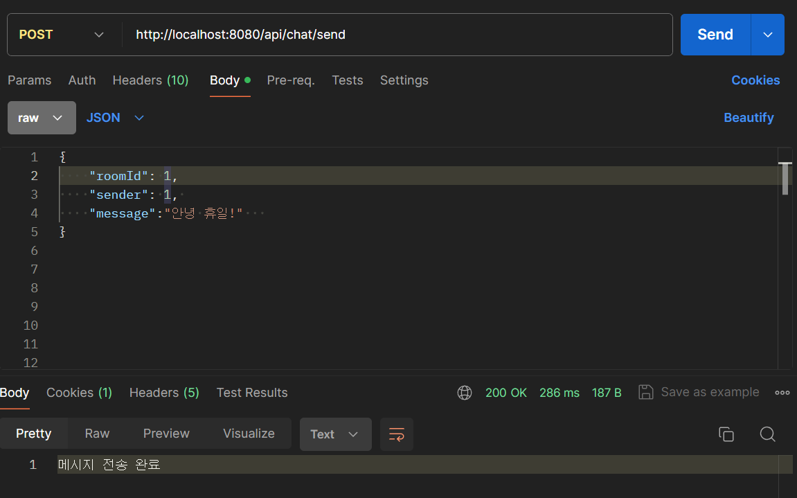 현재 상황은 이렇게 /api/chat/send에 데이터를 POST 요청하면