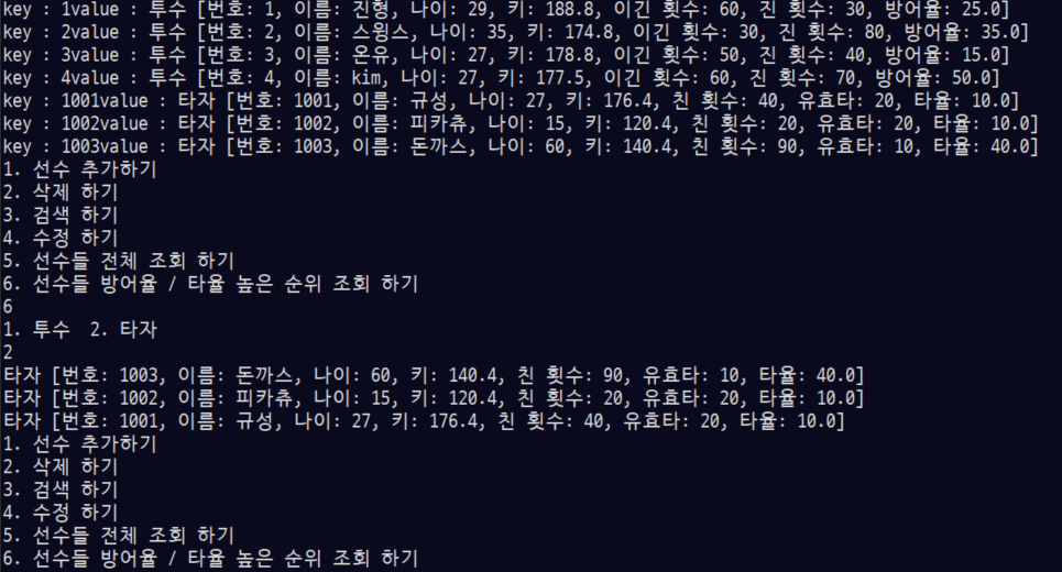System.out.println("5. 선수들 전체 조회 하기");